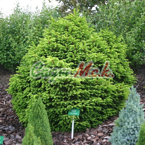 Ель обыкновенная Cupressina - невысокое хвойное дерево высотой 9 – 12 м и диаметром кроны 2,5 – 3 м. Крона густая, плотная, узко-конической формы. Хвоя игольчатая, короткая, слегка изогнутая, изумрудно-зеленая с серым оттенком, густо расположена на побегах. Молодые приросты – светло-зеленые. Женские шишечки ярко-розового цвета длиной 1, 5 см, к осени становятся красно-бурыми – 10- 12 см. Растение обладает поверхностной коневой системой. Растет медленно – 15 см в год.