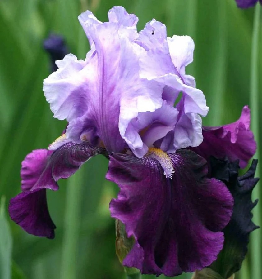 Ирис бородатый Блуберд Вайн (Blue Bird Wine) представляет собой одну из самых неприхотливых и оригинальных многолетников. Он хорошо переносит зиму и уже в мае способен радовать своими необычными бутонами. Имеет устойчивые к порывам ветра длинные цветоносы, но высаживать растение лучше на освещенные солнцем безветренные участки. Цветок ириса германского Вино голубой птицы двухцветный: верхние лепестки сиреневые, а нижние темно-лиловые. Более эффектно смотрятся в групповых посадках с другими сортами этого растения. Семенами размножается трудно, поэтому лучше рассаживать корень.