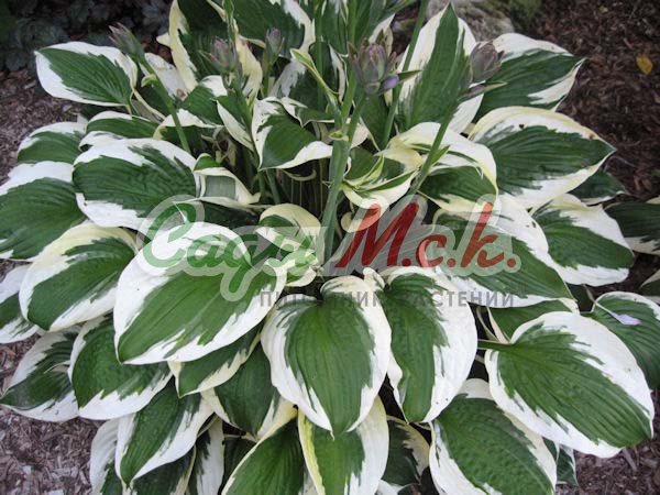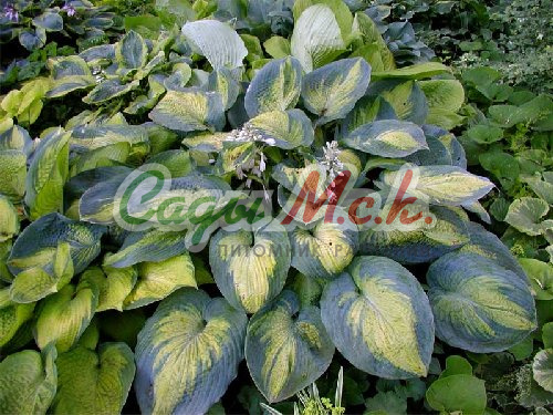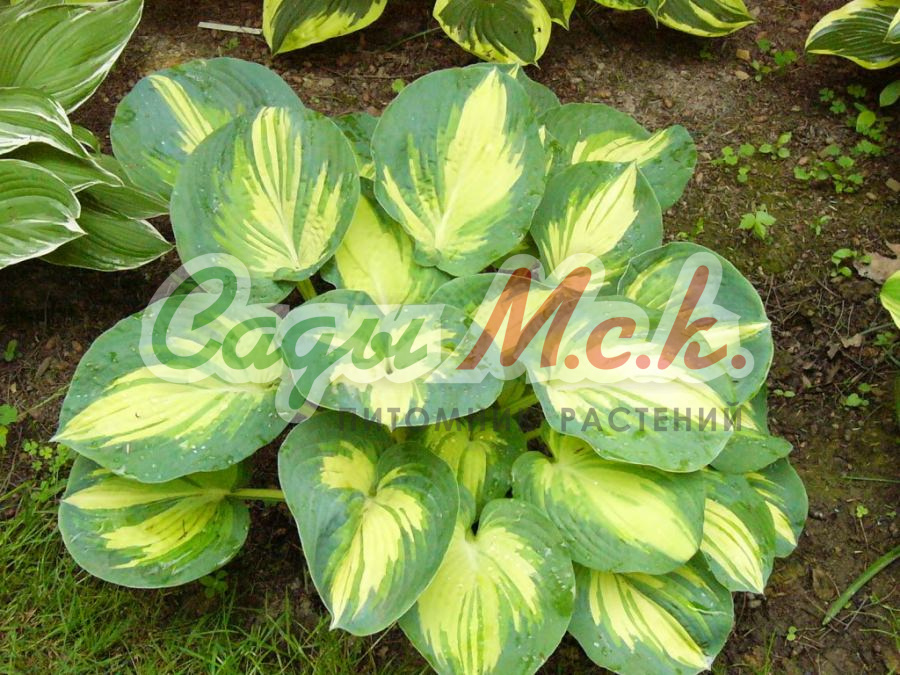 Хоста Аnn Kulра – многолетнее декоративное растение, образующее ярусный куст высотой до 50 см. Листовые пластины достаточно плотные, шелковистые, со слегка волнистым краем, небольшими выемками и сильно выраженным жилкованием. Они образуется весьма декоративный, плотный и компактный куст, который в середине лета зацветает, выбрасывая цветоносы с небольшими, лавандового цвета колокольчиками. Но заметным растение становится благодаря цвету своих декоративных листьев. Сердцевидные, голубовато-зеленые с золотисто-кремовым центром и зеленым краем – такую красивую окраску невозможно не заметить. Со временем светло-кремовый центр становится шире, а вот окантовка листа, наоборот, сужается. Гибридный сорт хорошо себя чувствует и в тени, и на солнце, предпочитая купаться только в утренних его лучах. Он может длительное время расти на одном месте. Но для сохранения расположенной по центру полосы его желательно часто делить.