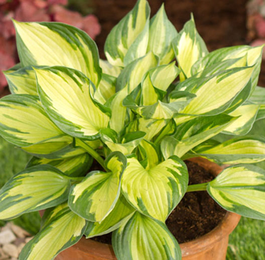 Хоста Colored Hulk – известный сорт зарубежной селекции с сердцевидными и чашевидными плотными, блестящими листьями. У декоративного многолетника очень интересная окраска: листовые пластины светло-зеленого, практически желтого цвета с неравномерным перьевидным рисунком по темно-зеленому краю. Такой необычайно пестрый куст средних размеров украсит любую коллекцию. Особенно красив он в пору цветения, когда над плотной пестрой «шапкой» распускаются лавандовые цветы на длинных цветоносах. Сорт неприхотливый, устойчивый к болезням и вредителям. Для посадки желательно выбирать полутенистые места, но растение может переносить и солнце, особенно в утренние и вечерние часы.