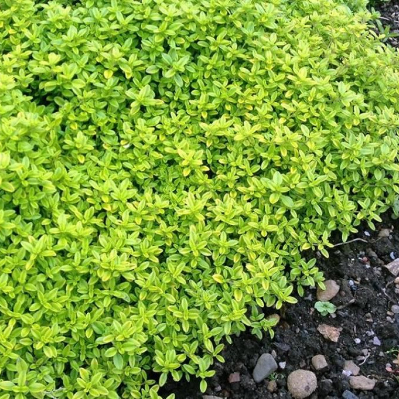 Тимьян (Чабрец) лимоннопахнущий Голди/Goldy привлекает преобладанием эффектного золотистого окраса, дополняющего темную зелень листвы. Это чудесный сорт сохраняет декоративность весь сезон, а особенно эффектно растение смотрится в период цветения, когда композиция декоративных кустиков обогащается сиренево-розовыми красками соцветий. Из этого тимьяна получается очень ароматный и вкусный чай. Тимьян (Чабрец) лимоннопахнущий Голди вырастает до 5-10 см. Рассаду предпочтительно высаживать на солнечные участки, поскольку в тени интенсивность цветения и развития растения намного ниже.