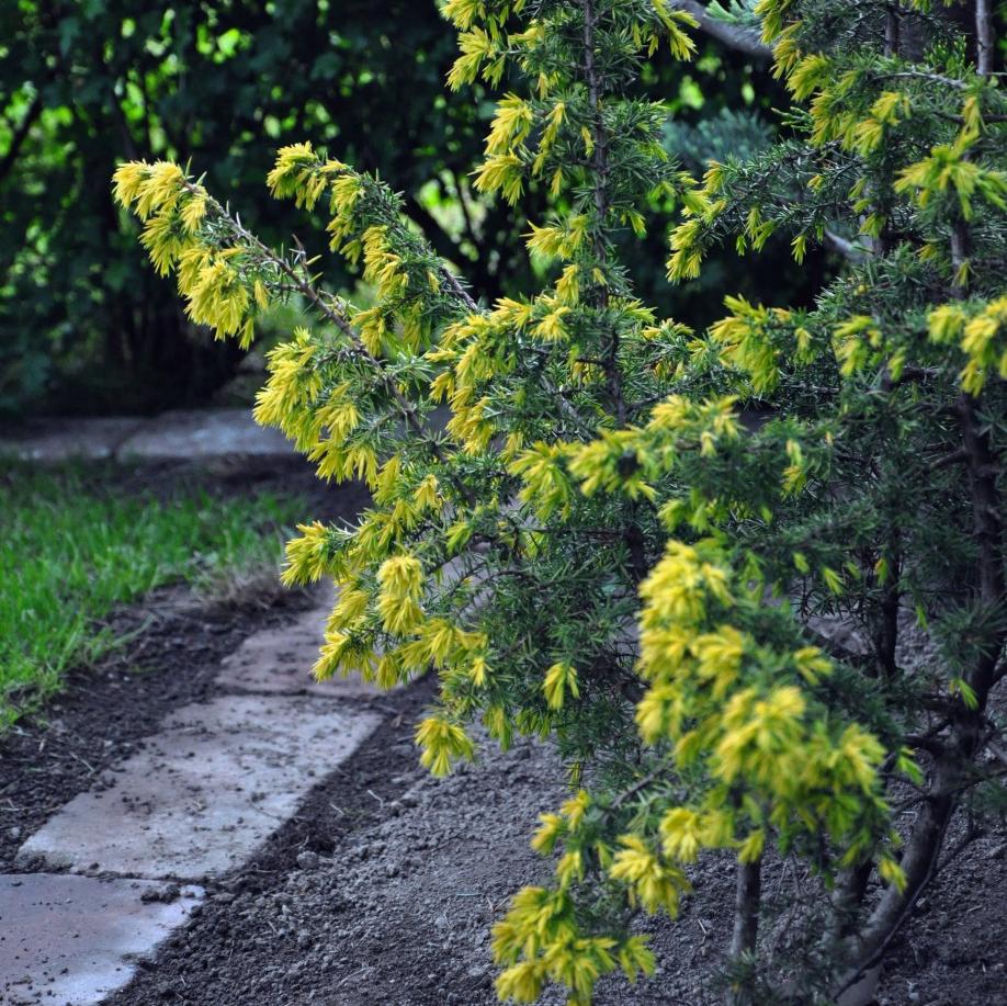 Можжевельник обыкновенный Шневердингер Голдмахангел – это искусственно выведенная форма растения. Можжевельники чаще всего используются для украшения садов и парковых зон. Особенно удачно они смотрятся в альпинариях, каменистых садах и групповых посадках с другими хвойными и травяными растениями. Можжевельник обыкновенный Шневердингер Голдмахангел – кустарник с конусовидной формой кроны и свисающими ветвями, из-за чего он кажется лохматым. Можжевельник обыкновенный Шневердингер Голдмахангел - вечнозеленый многоствольный кустаник с раскидистой кроной. У молодых растений форма асимметричная и развалистая, но к зрелости она станосится аккуратной и конусовидной. Хвоя короткая, тонкая, светло-зеленая. Молодые приросты яркого лимонно-желтого цвета. К зиме буреет. Кончики побегов свисают, поэтому деревце кажется лохматым. Высота куста - до 5 метров, диаметр - до 1,5 метра. Темпы роста быстрые: в год куст увеличивается на 20 сантиметров. Высота в 10 лет - 2,5 метра, ширина - 1,5 метра. С возрастом достигает высоты 3,0-5,0 м. Можжевельник обыкновенный Шневердингер Голдмахангел обладает высокой устойчивостью к морозам, может расти в городских условиях. В первые годы лучше укрывать от яркого солнца (куст может получить ожоги) и мульчировать на зиму. Кустарник нетребователен к почвам, но на тяжелых и бедных участках растет хуже. Идеальный вариант - свежие умеренно сухие участки с реакцией от слабокислой до щелочной. Почвенная смесь делается в соотношении 2:1:1 из песка, торфа и дерновой земли.